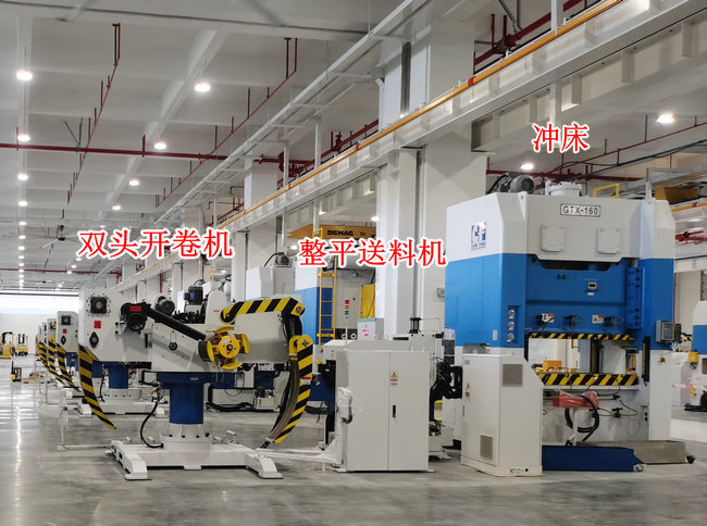 →卷料整平伺服送料機配雙頭開卷機自動沖壓生產線