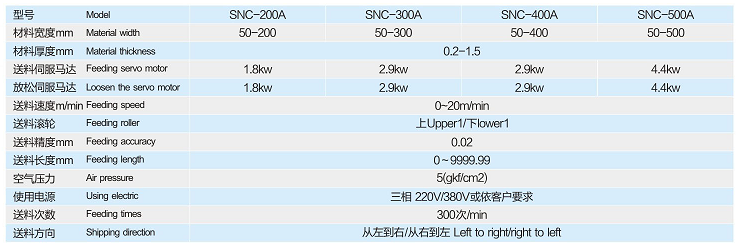 SNC-200A雙伺服送料機(jī)機(jī)器參數(shù)