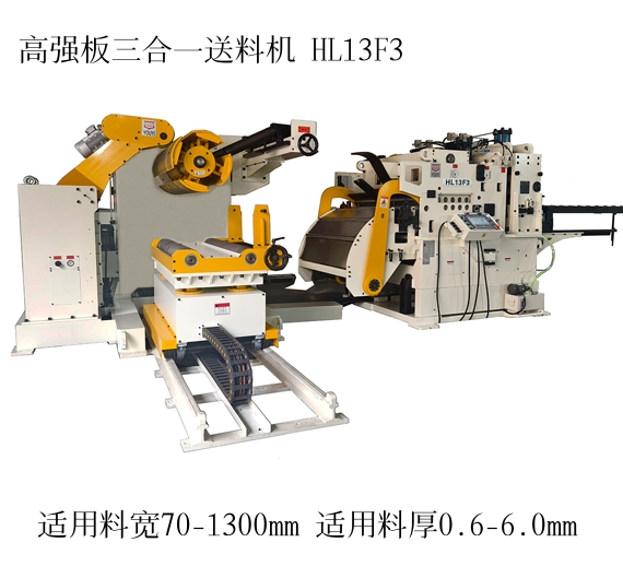 HL13F3三合一整平送料機(jī)針對(duì)料帶較寬、屈服強(qiáng)度較高的中厚板材料打造,整機(jī)結(jié)構(gòu)加固,能夠穩(wěn)定處理高強(qiáng)鋼、汽車結(jié)構(gòu)件等難加工材料,確保送料連續(xù)、高效、可靠。